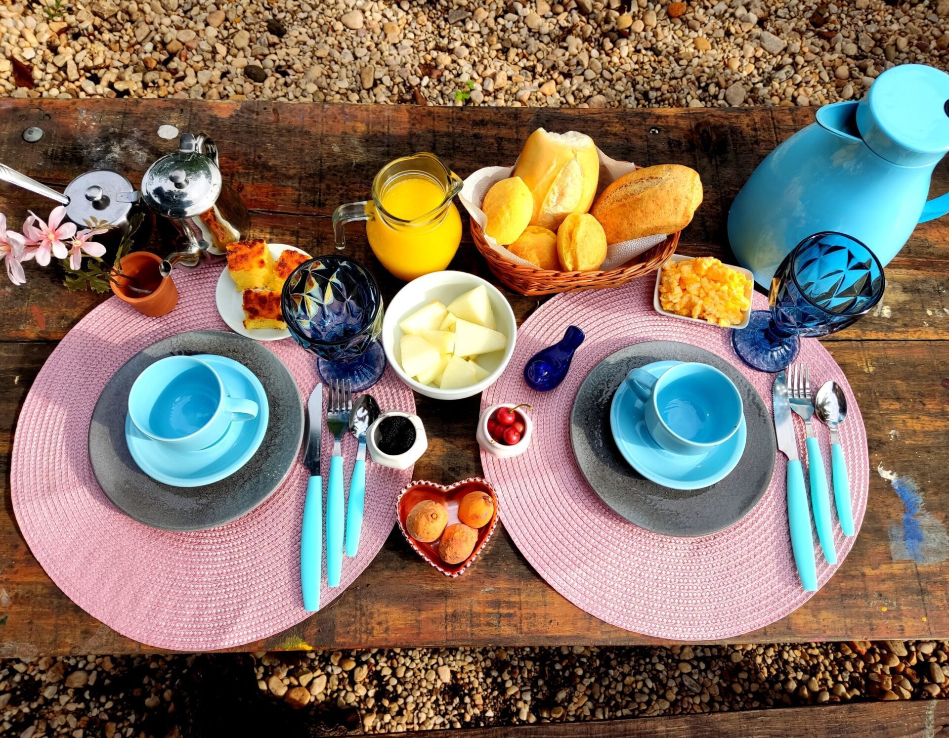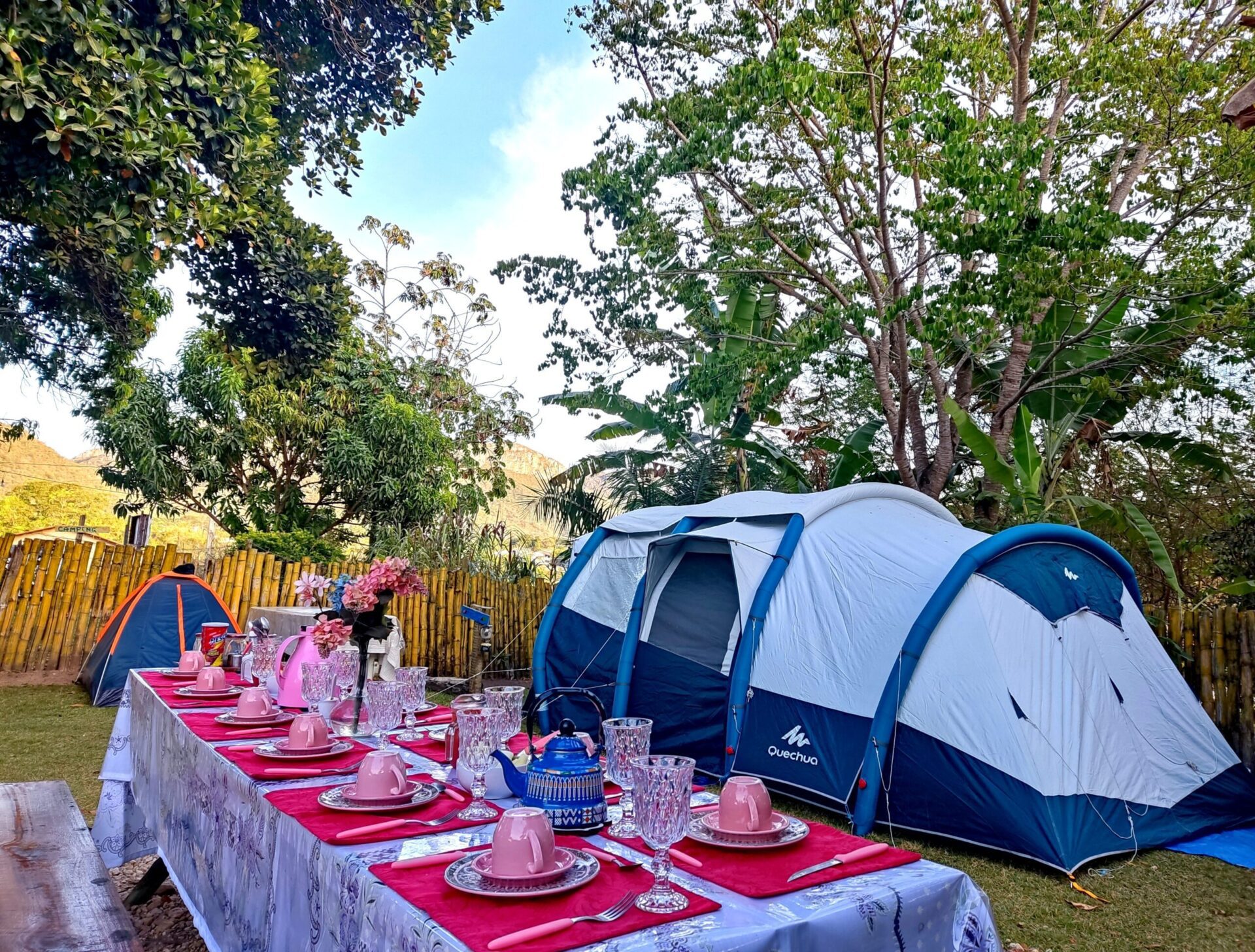 Mas nosso diferencial está mesmo no maravilhoso café da manhã oferecido em formato de mesa posta aos hóspedes. Preparado com muito amor e afeto, o café é bem reforçado para aguentar um dia inteiro nas belas trilhas que a cidade de Cavalcante proporciona ao visitante.